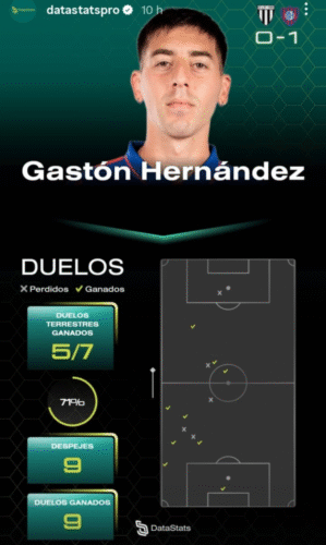 Según DataStatsPro, ganó 5 de 7 duelos por abajo y ganó 4 por arriba, por donde el rival insistió mucho. Además, despejó 9 pelotas y fue de los mejores del equipo en ese rubro, volviendo al nivel que lo hizo ver como uno de los puntales del San Lorenzo 2025.