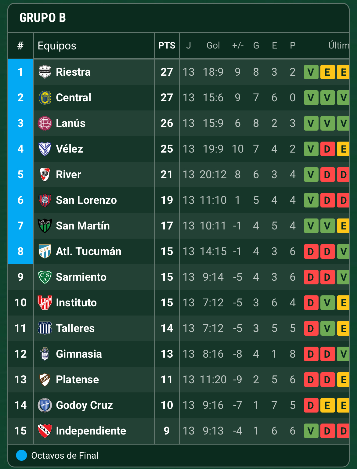 Actualmente, los dirigidos por Ayude se ubican sextos en la Zona B con 19 puntos, producto de 5 victorias, 4 empates y 4 derrotas. El último equipo que hoy estaría ingresando a los playoffs es Atlético Tucumán, en el octavo lugar con 15 unidades. Más atrás, en la décima posición, aparece Sarmiento con la misma cantidad de puntos, lo que convierte al último partido del torneo en un duelo directo y clave para las aspiraciones del Ciclón.