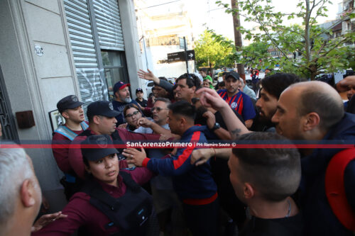 El presidente Moretti llegó a la sede y los hinchas del Ciclón lo esperan en la vereda. Se montó fuerte operativo policial y el dirigente no puede salir.